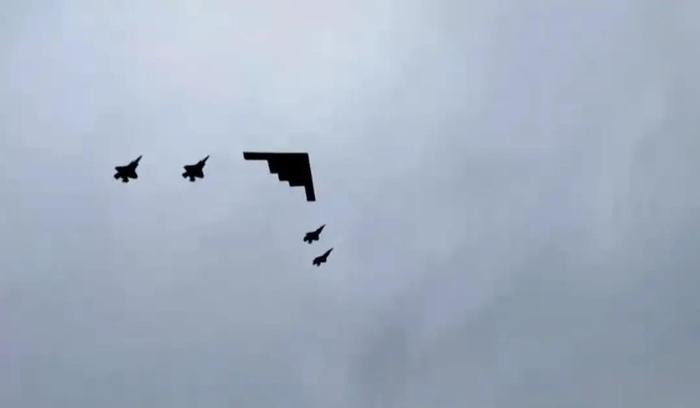 特朗普和普京走红毯时,B-2和F-35低空飞过